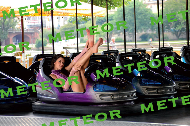 La méthode est simple : je fouille à travers tout le web pour trouver des photos de manèges grand format qui me plaisent, puis des photos de belles filles en grand format elles aussi (et oui, faut du grand format pour ensuite imprimer sans que ce soit tout pixellisé) et c'est parti pour les montages... Quand un montage est bien fait, on ne doit pas se rendre compte que c'en est un. Il faut donc travailler beaucoup la chromie, les ombres, etc.. Certains montages sont fait à partir de 3, voire 4 photos différentes. Je me suis pris au jeu et j'ai fini par créer toute une série, baptisée et signée "Funfair Sweeties" ('douceurs foraines"). Je viens donc vous en présenter quelques-unes ici en exclusivité mondiale pour Nightfly via notre cher Alex (loué soit son nom) et si ça vous branche, d'autre suivront. Il y a bien sûr, dans cette première série de 4, un montage fait à partir du manège d'avions pour adultes Le Météor auquel je dois mon pseudo, avec une belle pilote de ligne