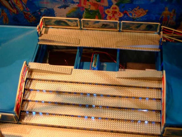 Par contre pour l'éclairage, il y a simplement des trous dans les escaliers avec une lumière bleue derrière.