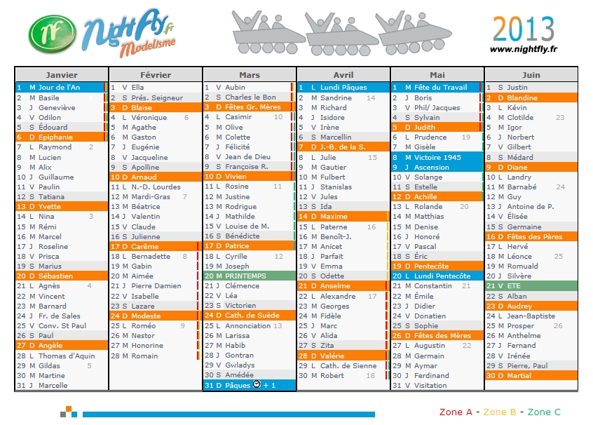 Le calendrier 2014 semestriel est disponible sur le site : http://www.nightfly.fr/calendrier.php