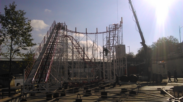 Voici donc les premiers métiers arrivés. A rouen la place étant restreinte, les métiers doivent arriver dans un ordre bien précis pour ne pas se gêner lors du montage.
