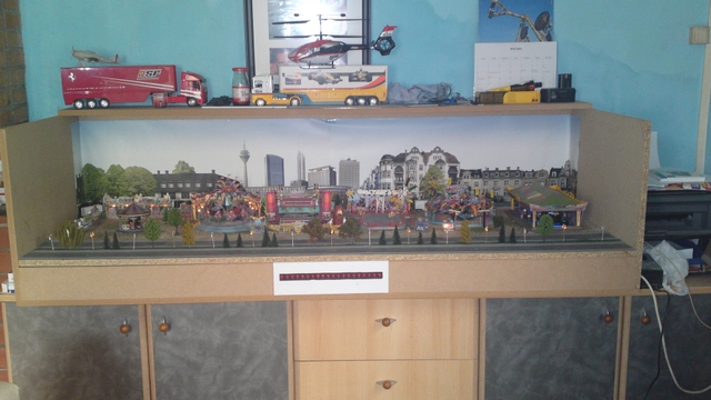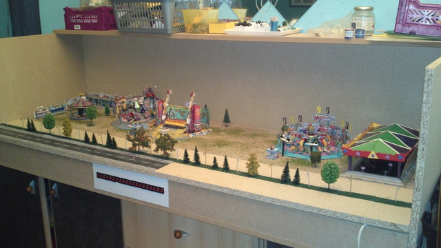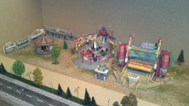voici les photos de mon nouveau diaporama il est encore au debut mais je travail encore decu une grosse partie du branchement est deja fini il reste un emplacement de libre qui va aceuillir le salto mortal le decor de fond va bientot arriver et quelque stand seront rajouter plus tous les finitions comme le plexi, les personnages ,les route, les banc, ext........