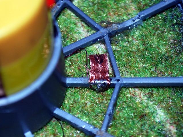 Ensuite je mets un peu de soudure avant de couper sinon elle s'effiloche, je coupe le morceau à la longueur désirée (environ 2 à 3 cm), puis je plie à 90 degrés au niveau de la soudure, et en fin elle est simplement collée à la super glue dans le sens de rotation du manège, bien sur ne pas oublier le petit fil d'alimentation.