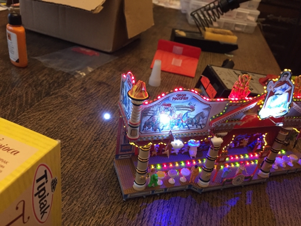 Ensuite je me suis lancé dans la construction du manège de chevaux de bois j'en suis au tout début, ça prend forme ........