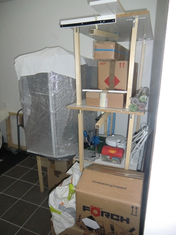 La le module est la tour à juste était séparé du reste et emballé monté. Les autres maquettes sont dans les cartons et le wooden est au dessus du module de la tour sous le draps.