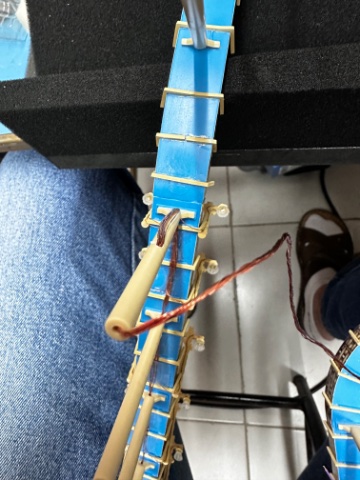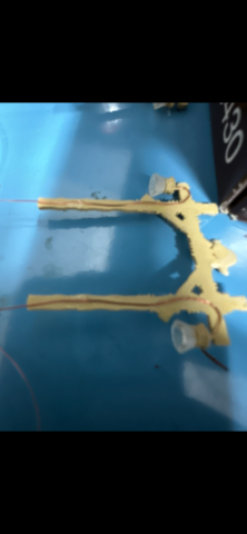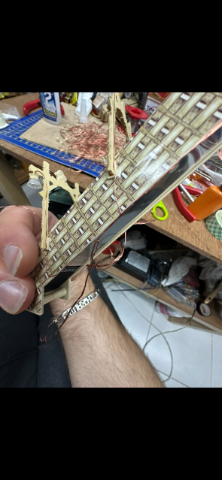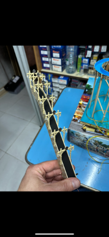 Salut à tous , on poursuit le montage des lanternes avec les mâts doubles , sur idée de mon père , j’ai fait un test afin de voir si je pouvais passer les fils dans un des mâts pour avoir une propreté de travail sans fil apparent