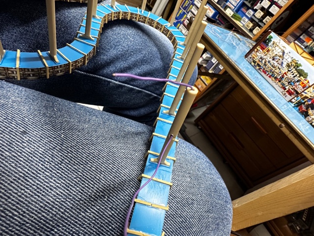 Salut à tous la suite des événements ………je me suis posé pas mal de questions à savoir comment j’allais passer les fils du coup je les ai collé sur la tranche inférieure de la montée , ça prend du temps quand même cette opération là