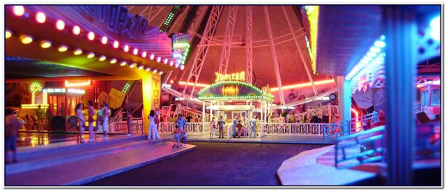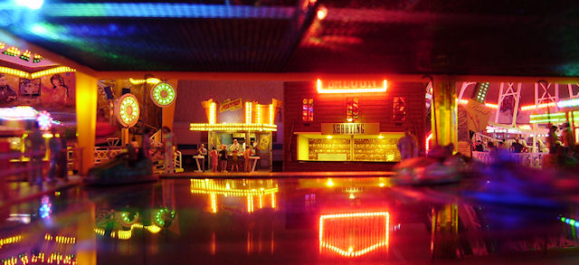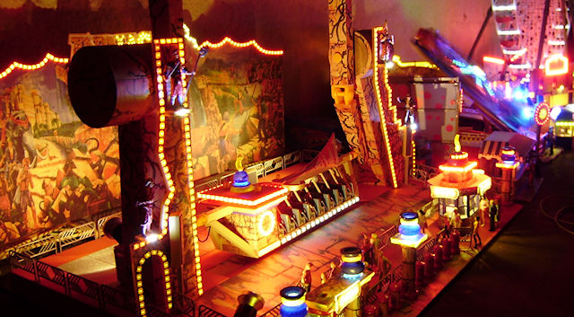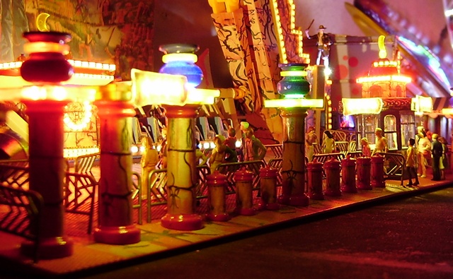 la restitution d'une fête foraine de nuit est magnifiquement rendue car l'intensité est forte contrairement à certains dioramas où les éclairages sont faibles.