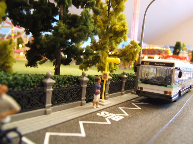 Salut Lionel, dis voir, sur la photo avec la scène de l'arrêt de bus , tes arbres ont quel taille ??? et la marque c'est FALLER ou BUSCH ??? C'est exactement le style que je cherche pour mettre à l'entrée de ma future fête foraine .... merci