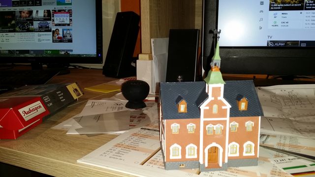 mairie terminée demain elle sera patinée, quelques aménagement à refaire autour et la maintenant l'éclairage ne passe plus à travers, d'autres maisons seront changées