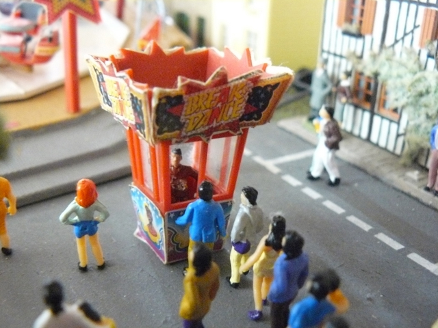 voici maintenant la suite de ma maquette j'ai rajouté un module,comprenant manege de balançoires et unmanege enfantin.j'ai ajouté les personnages.et je ferait plus tard la signalisation au sol