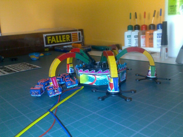 pour des attractions comme le Wilde Maus tu peux très bien cacher toutes tes dérivations dans une remorque que tu placeras au centre de ton attraction au sol comme dans la réalité parfois, j'ai fait ça pour mon grand 8, on n'y voir que du feu, et j'ai poussé lé réalisme en mettant du fil à coudre noir partant de la remorque pour évoquer les gros câbles en réel.