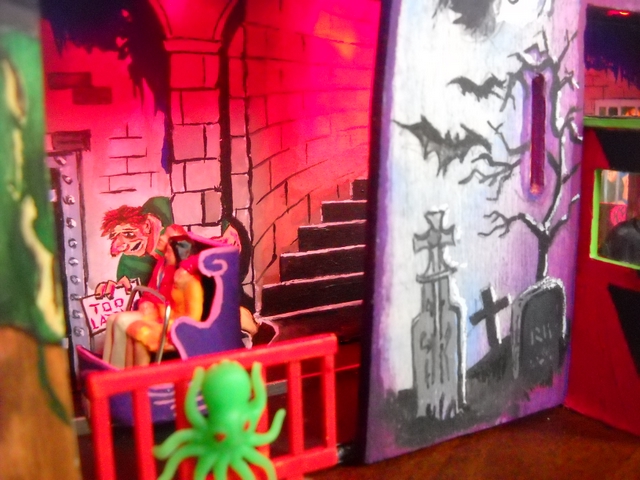 Genial les couleurs colle bien au théme surtout le rouge a l'interieur c'est comme dans la realité,cela donne encore une autre dimension a ton train fantome bon boulot.