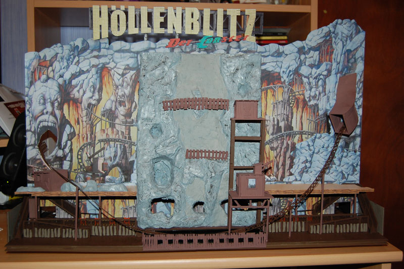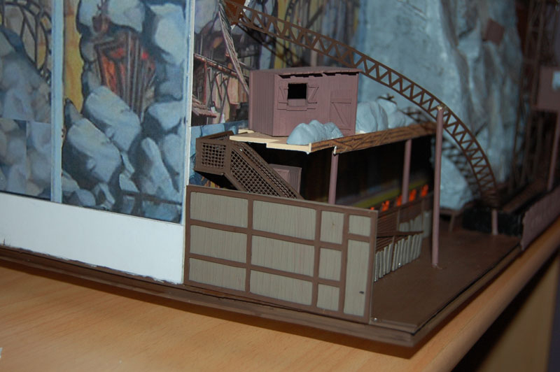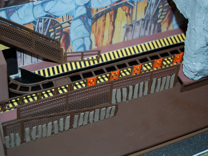 Voici les premières photo elle concerne la file d attente cotte gauche j installerai le toit ce soir et la cabane du dessus et voici la photo de l enseigne photo cet fois avec le toit et les rochers qui ne sont pas encore peint: voila la photo d ensemble bien évidemment il me reste encore beaucoup de décors a faire mais sa prend forme voici la pose de la courbe elle va etre un peu plus incliné a droite avec la pose des autres soutiens voici une bonne avancée avec les 2 cabanes sur la paroi rocheuse ainsi que le bassin de reception de l eau en bas avec la barriere a fenetre ici la palissade de coté qui cache l escalier de sortie et le quai Voici une video de l ensemble du métier: