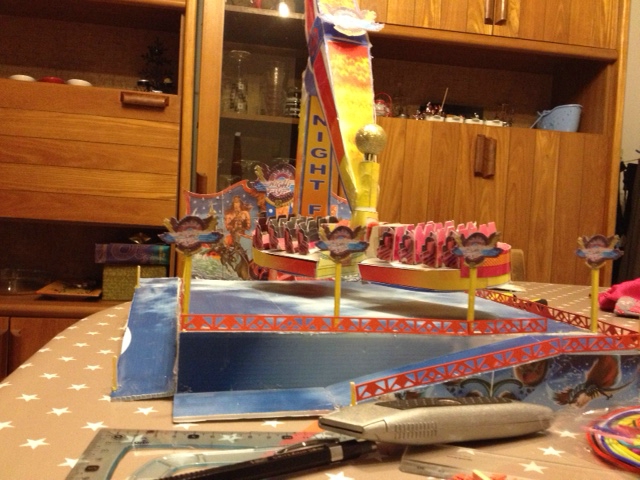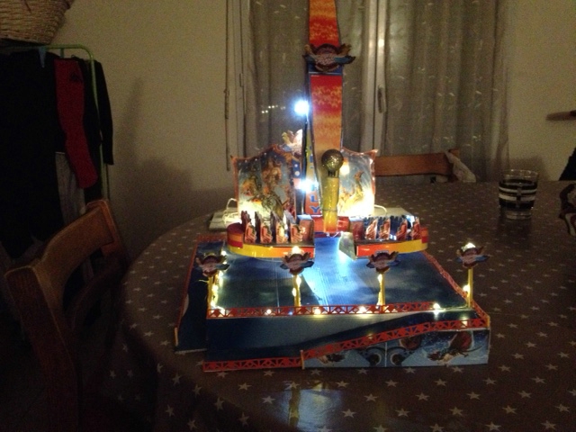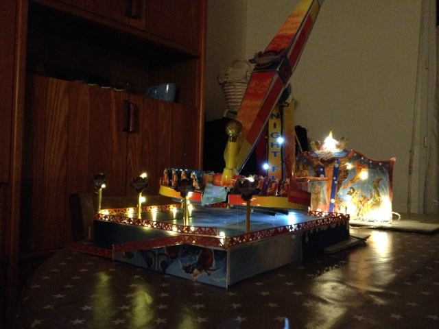 Il a été fabriqué avec des feuilles canson, papier photo imprimé, allumettes.