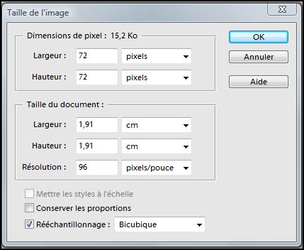je redimensionne la taille de l'image (avec taille du document / cm) mais lorsque tu redimensionnes les dimensions de pixels changent aussi