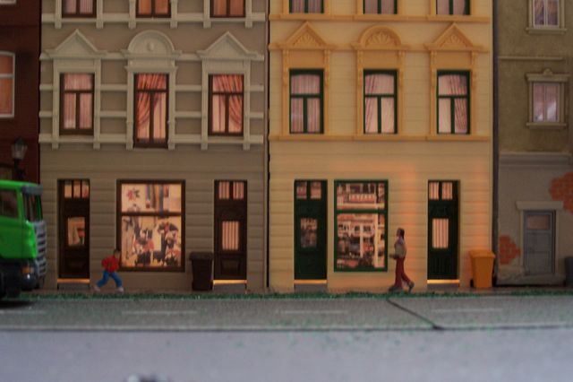 passons l'affreux moment du pupitre, voici une scéne quotidienne de la vie ramassage des ordures, shopping et cinéma plus éclairage mis dans les maisons voilà c'est repartit