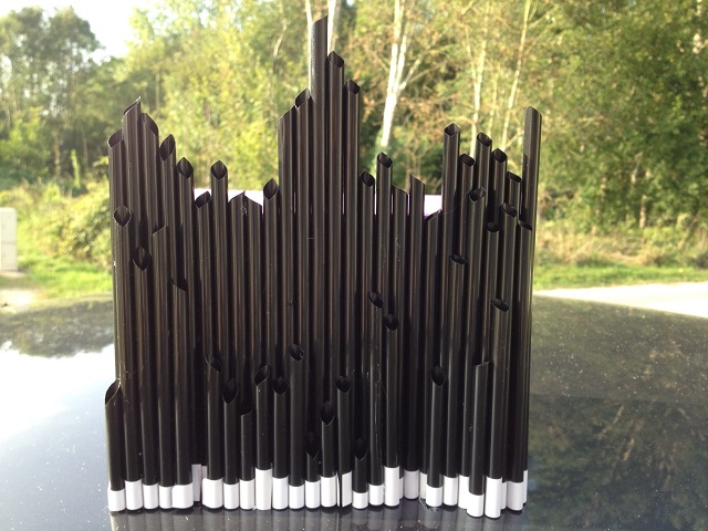 Voici aujourd'hui le tapis magique. Les tubes sont des pailles noires.